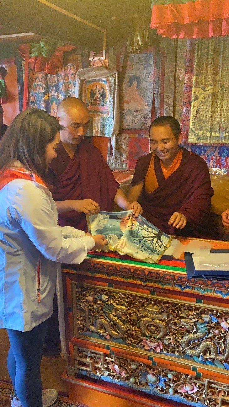 El 21 de agosto, Yang y Noel aprendieron con artistas locales a hacer pinturas tibetanas Thangka, el arte sagrado de pintura religiosa que se ha transmitido de generación en generación.