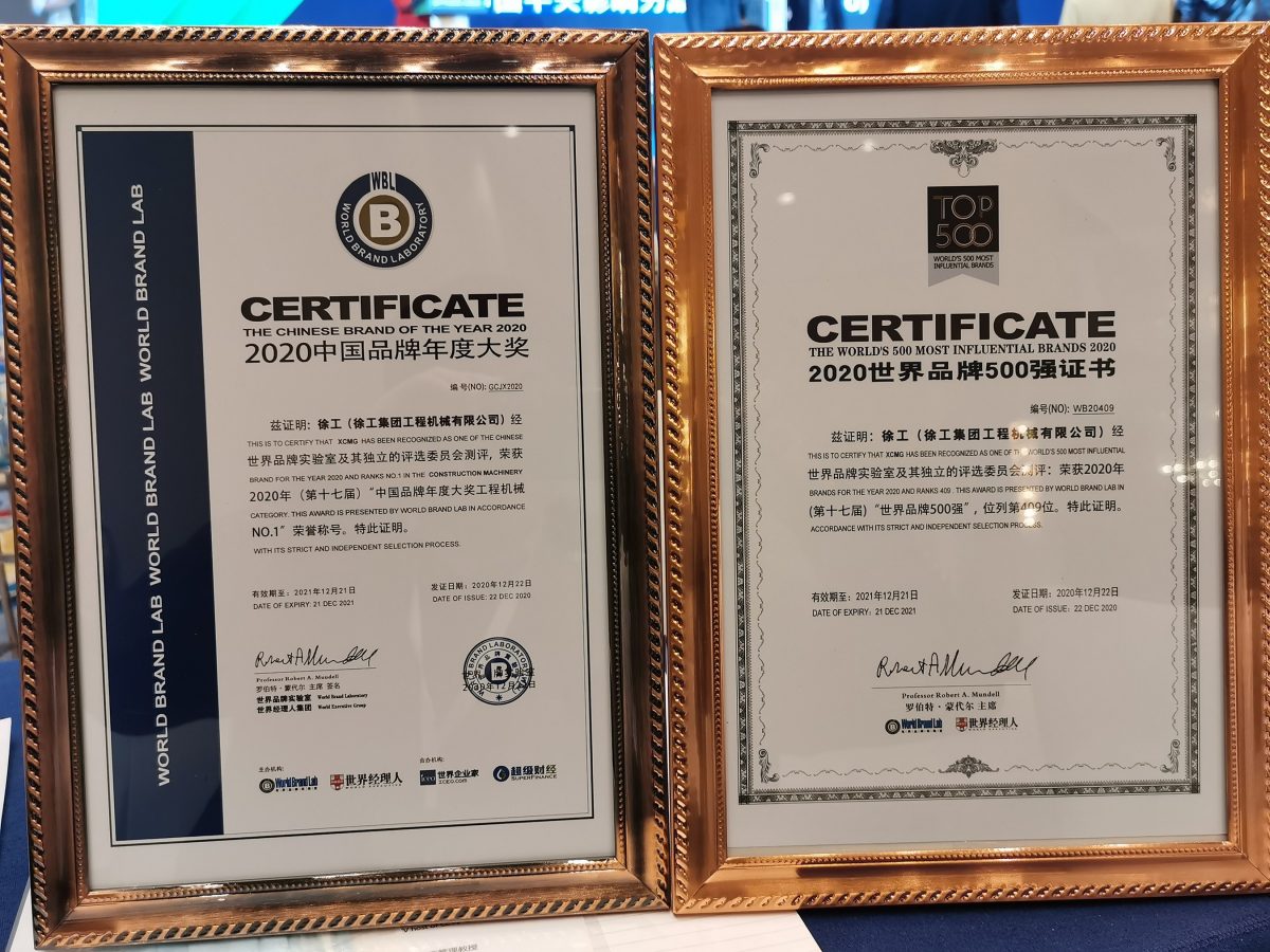 XUZHOU, China, 23 de diciembre de 2020 /PRNewswire/ — XCMG (000425.SZ), uno de los fabricantes de maquinaria de construcción más importantes del mundo, ha sido nombrado por segunda vez por el World Brand Lab (laboratorio de marcas mundiales) como una de las 500 marcas más influyentes del mundo y es el único fabricante chino de maquinaria de construcción en llegar a la lista de 2020. La empresa también se encuentra entre las 100 mejores marcas de la lista 2020 de las 500 marcas más valiosas de China.