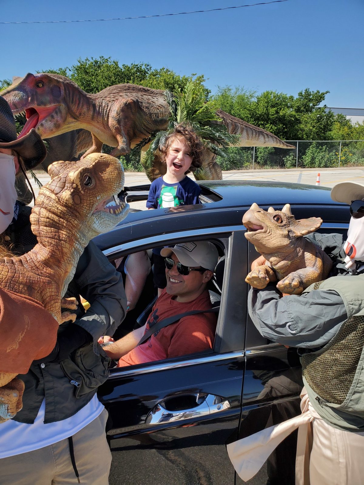 Jurassic Quest Drive Thru adventurers will need to buy tickets in advance online at www.jurassicquest.com. Tickets are $49 per vehicle and include a 100% ticket guarantee that in the event of a show cancellation or postponement for any reason, ticket purchases will be automatically refunded for the full purchase amount. Guests must travel through the drive-thru in the comfort of their own vehicle – no rentals or golf carts will be provided, and walkers are not allowed. To ensure participant safety, all guests must ride inside their vehicles (yes, pets inside vehicles are allowed), no riders in truck beds, however. Trailers are also not allowed – we’re worried they might tempt the hungry dinos too much! Oversized vehicles and vehicles with 9 or more riders are permitted but will need to contact Customer Service, customerservice@jurassicquest.com, for pricing and scheduling. A full list of Frequently Asked Questions can be found online at https://www.jurassicquest.com/drive-thru-faqs.