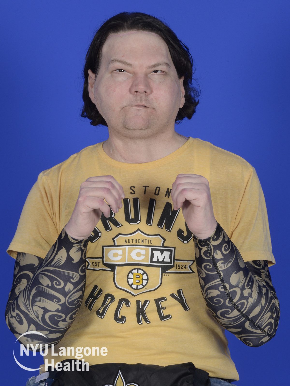 El receptor en este caso reciente es Joe DiMeo de Clark, NJ, que sufrió quemaduras de tercer grado en más del 80 por ciento de su cuerpo debido a un accidente automovilístico ocurrido en julio de 2018. A pesar de someterse aproximadamente a 20 cirugías reconstructivas, DiMeo tenía lesiones extensas —incluidas yemas de los dedos amputadas, cicatrices faciales graves y ausencia de labios o párpados— que afectaban a su visión y sus actividades diarias, y limitaban gravemente su capacidad para llevar una vida funcional e independiente.