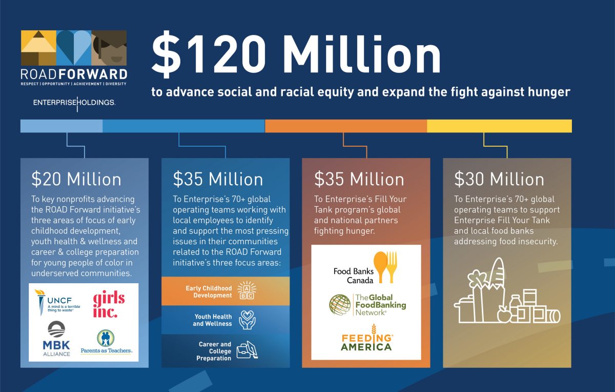 In addition, the Enterprise Holdings ROAD Forward initiative will allocate funds to its 70+ global operating teams over the next five years, empowering employees to take the lead in identifying pressing issues related to the program’s three focus areas in their communities and supporting local organizations that are best equipped to address them.